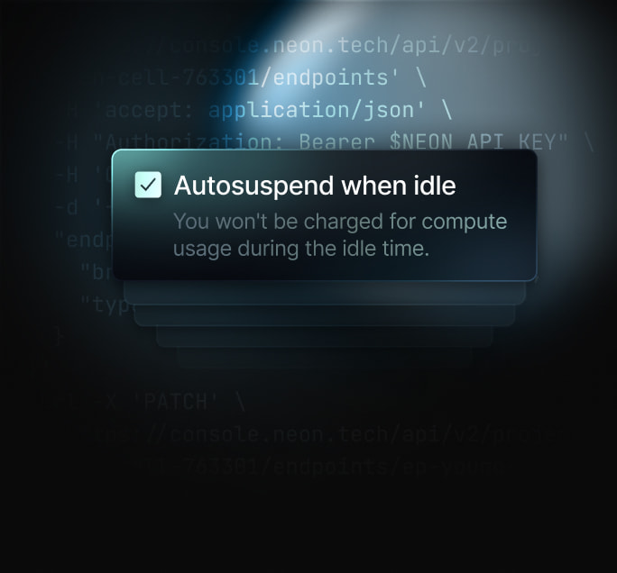 Powerful API. Use the Neon API to create databases, run migrations, and manage limits.